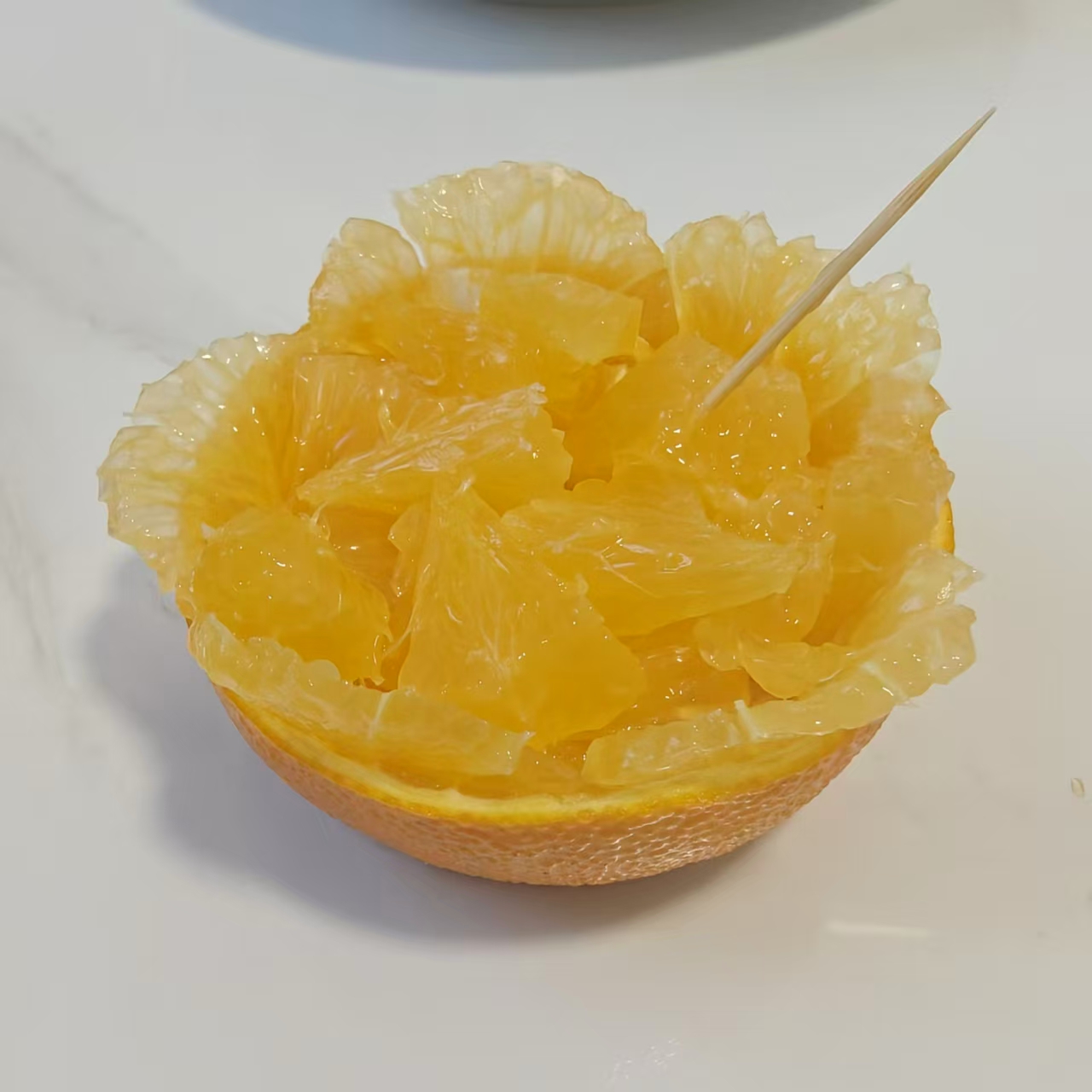 评价:水分排第二,果皮厚度要比爱媛28厚一些,拿在手里比爱媛28要硬很多,这个可以直接用手扒开,爱媛28和爱媛38这个口感都差不多,这个酸甜2:8。
