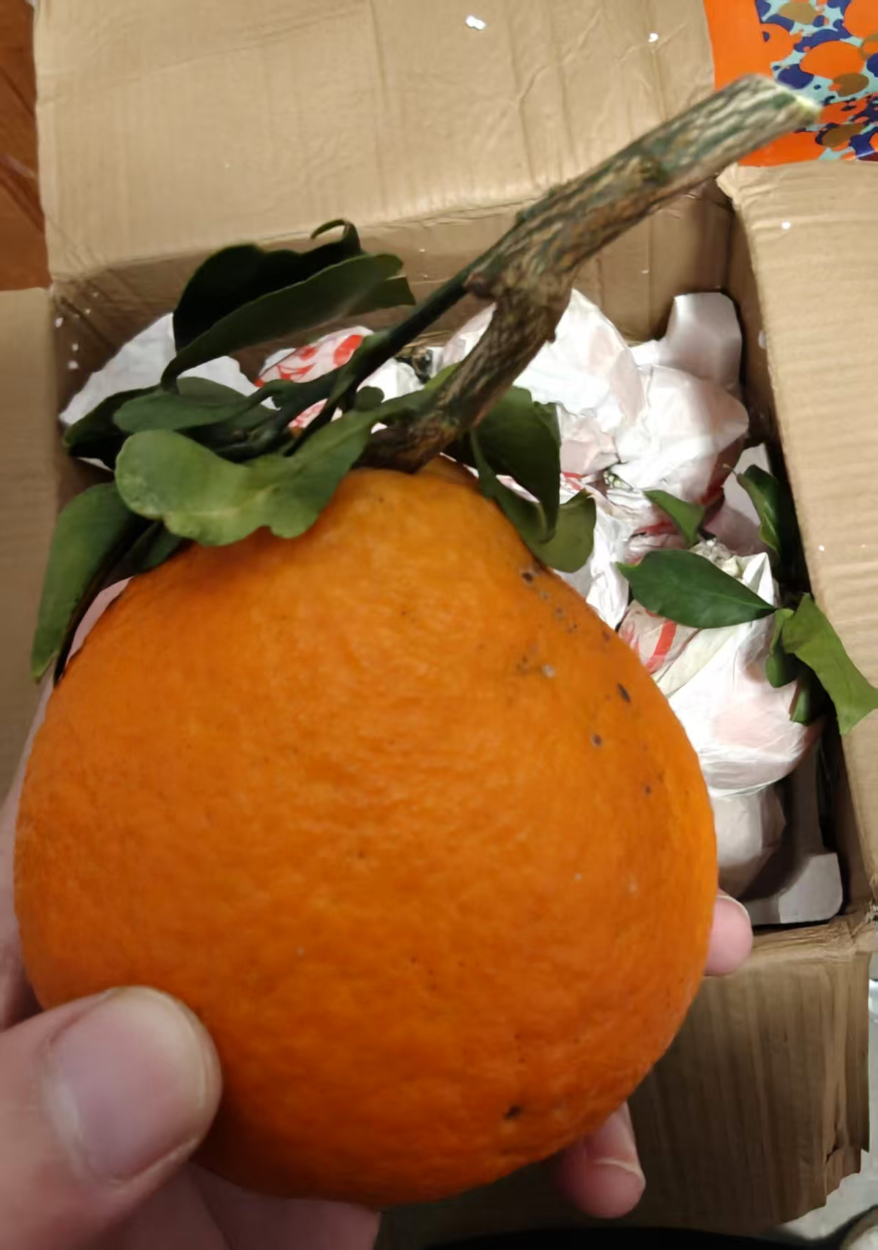 评价:冰糖橙是我最喜欢的,橙香味很足,无论果子大与小,吃起来都非常甜。果子拿在手里是捏不动的,皮比较厚整体很硬实,橙络不用剥干净,吃起来也是尝不到苦的,而且很有嚼劲(后面从电商平台买了一些相对便宜一些的,产地也是湖南,口感和品相远不及找果农买的这个,贵应该有贵的道理吧)